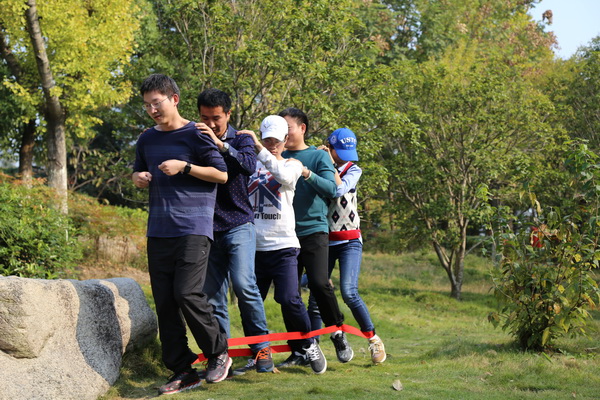 午后经过短暂休息之后,同学们来到了预先定好的素拓地点。同学们先后积极踊跃地参加了“标盘掷沙包”和“巨人的脚步”等素质拓展活动。“标盘掷沙包”旨在活跃气氛、调动大家参与活动的积极性,同时锻炼同学们的分析力、判断力以及力度控制力。把同学们的积极性调动起来后,紧接着就是团队素拓项目——“巨人的脚步”。“巨人的脚步”要求每五人为一队,站成一列,用道具将五人的双脚连接,旨在锻炼同学们的团队协作能力,增强相互之间默契。有近十支队伍参加了此团体赛,其中一支队伍仅用了27秒就走完了全程,摘得了团体素拓活动的桂冠。