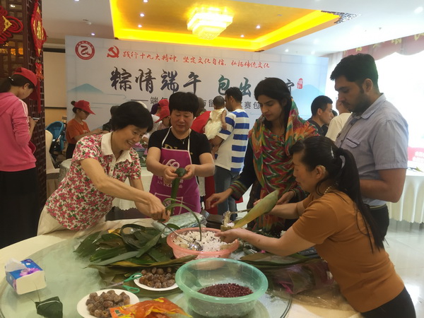 端午节来临之际,为了让留学生深入感受中国传统文化,丰富留学生校园生活,6月13日研究生处联合半岛社区开展“迎端午包粽子穿汉服”中华传统文化体验活动。活动吸引了来自巴基斯坦、苏丹等国家的20余名留学生及其家庭成员参与。