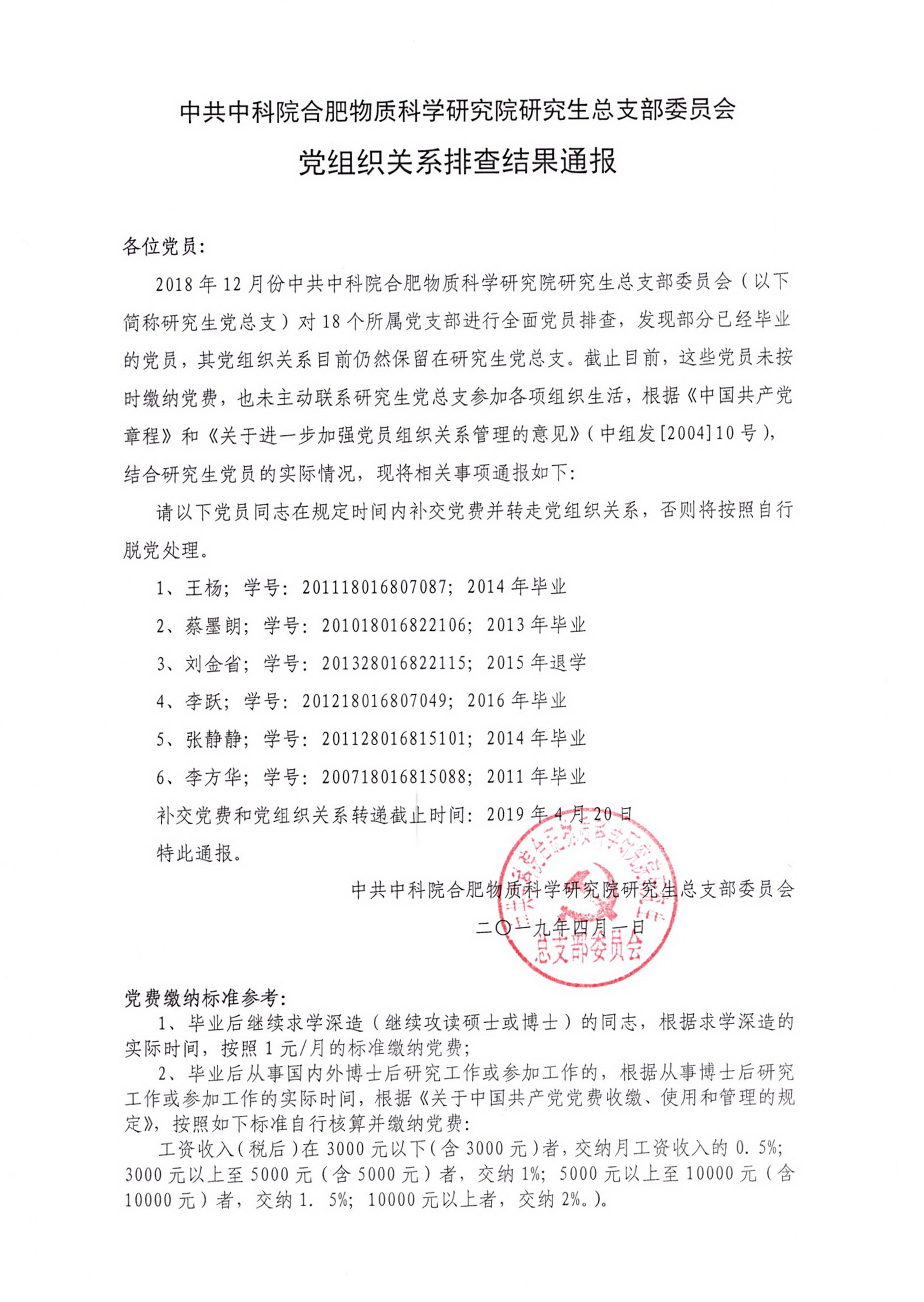 研究生党总支党组织关系排查结果通报