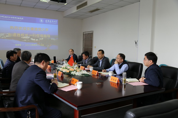 孙道胜校长首先感谢合肥研究院一直以来对安徽建筑大学发展的支持和帮助表示感谢,指出安徽建筑大学和合肥研究院有着良好的合作背景和基础,希望进一步扩大与合肥研究院联合培养研究生的规模,在此基础上,设置以合肥研究院导师为第一导师、安徽建筑大学导师为协助指导老师的联合培养机制,强化双方在研究生培养和科研工作等方面的交流与合作,以此促进安徽建筑大学导师队伍建设。