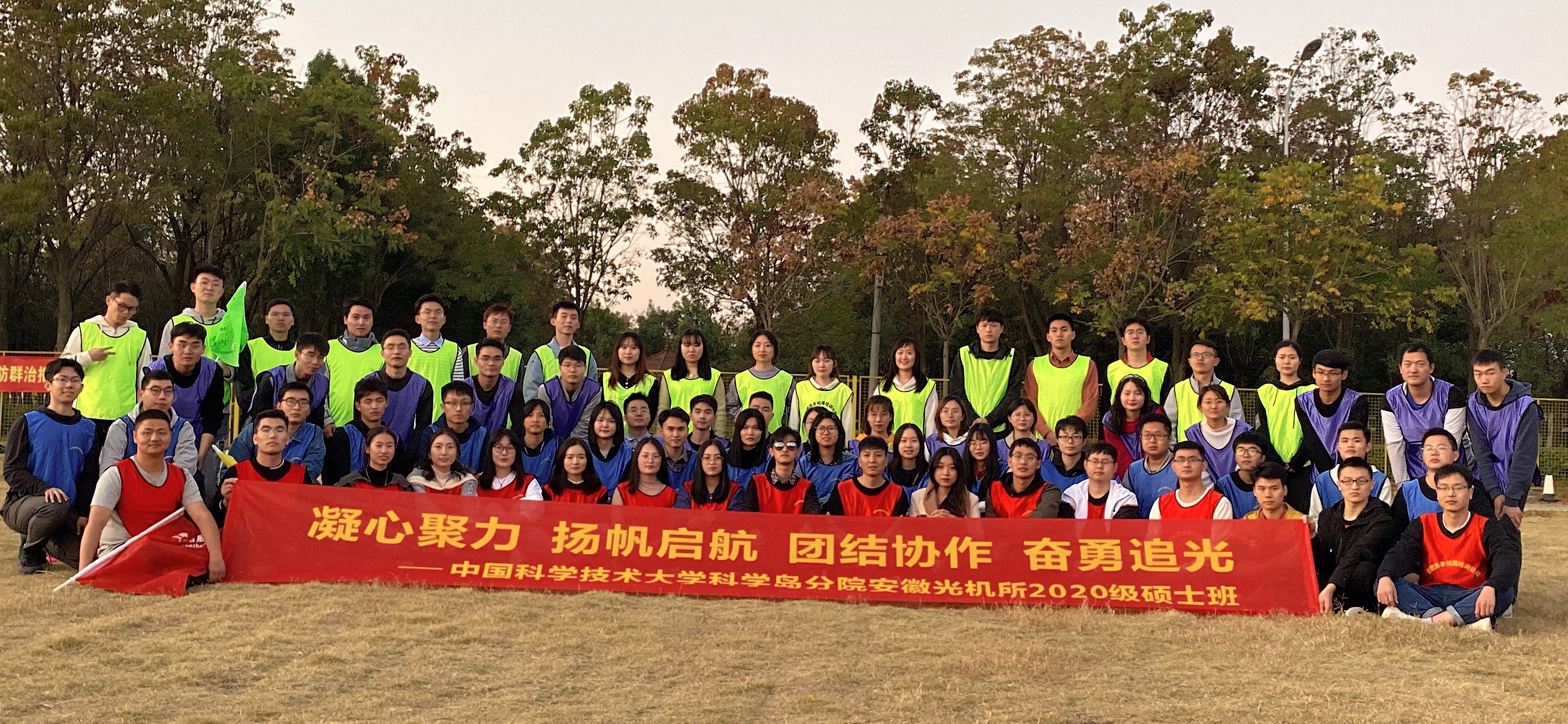 秋池渐涨,秋叶渐黄,在这个美丽的秋天,为增加新生相互了解增进新生之间相互交流,11月14日中国科学技术大学科学岛分院安徽光机所20级硕士班在合肥博晟生态园举行了“凝心聚力 扬帆起航 团结协作 奋勇争光”主题新生素质拓展活动。本次素质拓展活动旨在增进同学们之间的联系,为以后团结协作的氛围、和谐的研究生生活奠定基础。