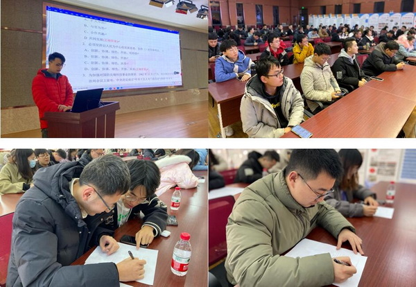 首先,科学岛与会同学在智能所新楼报告厅进行党史和冬奥知识竞答,由研究生智能所第四党支部书记胡俊主持,智能所研究生第三党支部党员在常州先进制造中心惠弘楼二楼会议室同步开展,由研究生智能所第三党支部书记徐潺潺主持。主持人先向大家介绍了知识竞答规则及注意事项,同学们自由组队并共同限时完成竞答题目。答题结束后,主持人带领大家共同回顾题目,同学们针对争议问题进行了热烈讨论。知识竞答环节促进了支部间党员互动,同时加深了大家对党史和冬奥活动的了解。