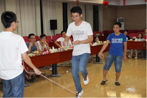 6月10日晚上七点,强磁场中心五楼大会议室开始传来阵阵欢声笑语,中心的全体毕业生和非毕业生在这里敞开心扉,交流互动,尽情K歌。一个个分队PK的小游戏贯穿“欢送会”始末,并将晚会逐渐推向高潮。“左手右手”考验了大家的反应能力和左右手的协调控制能力,大家玩的不亦乐乎;“杯水保卫战”要求参与者双手握盛满水的水杯跳绳十次,所剩水多者获胜,大家由开始的不适应慢慢掌握了技巧,变成了游戏高手;“铁人三项”是最刺激也是最考验参与者胃的游戏,成功的将现场气氛带向高潮;“疯狂猜词”与“双剑合臂”游戏则考验了组内成员的默契程度。游戏的间隙,大家也一展歌喉,李剑的一曲《敢问路在何方》水平媲美专业水准,技惊全场!有“强磁场情歌王子”之称的邹贵弘也献上一首首金曲,博得大家阵阵掌声。最后,一块写有“毕业快乐”的大蛋糕被带入会场,伴随着大家对毕业生衷心的祝福,“欢送会”圆满落下帷幕!