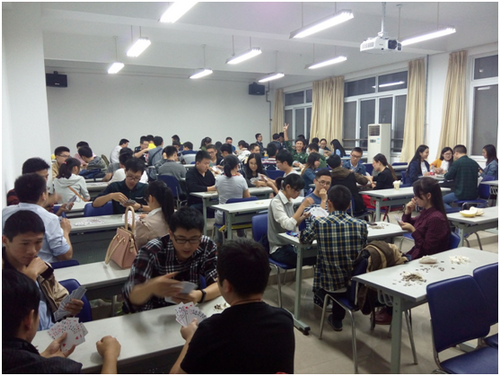 为加强安光所同学之间的交流,丰富大家的业余生活,10月16日,安光所研究生会在教育基地三楼教室举办了"掼蛋"比赛。比赛以“提倡健康快乐的工作理念、推进创新文化活动的开展”为主题,得到了同学和老师的积极响应,共有64人报名参加了本次比赛。
