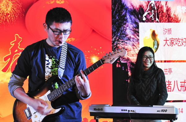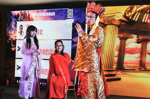 本次联欢会以“圆梦科岛 绽放青春”为主题,节目形式多样、内容丰富多彩:不仅有舞蹈、歌曲、小品等常规类节目,更有武术、幽默剧、散文朗诵、乐队演奏等新颖节目。联欢会以欢快的《扇子舞》拉开帷幕,研究生艺术团舞蹈队的同学们用优美的舞姿、青春的热情带给大家辞旧迎新的欢乐气氛。强磁场的许学莉黄栋梁等同学给我们带来幽默剧《黄河大合唱》以绘声绘色的动作配合激情昂扬的黄河大合唱背景音乐,将中国抗战时期青春与热血表达得淋漓尽致。辩论队的同学们为大家带来的《搞笑新闻联播》诙谐幽默,带来新闻联播新体验。夜色阑珊组合演绎的《yellow》、王雪霏同学的《也许明天》,生物所周清同学的《痴心绝对》,一组歌曲串烧丝毫不逊色原唱,深情的演唱赢得了热烈的掌声。智能所小品《科岛乱弹》结合新生的心理特点和老生的科研生活点滴,用激情与睿智表达他们对科研事业以及科学岛大家庭的热爱。舞蹈队的《爵士舞》炫目动感、充满激情与活力;《神话》则曼妙多姿、情深意切,看的观众如痴如醉。武术协会为我们带来的《武道奇缘》,一群帅哥美女们不仅虎虎生威、一展好身手,而且结合情景剧将青春与爱情贯穿其中,别出心裁又不失完美。李晨琨的吉他弹唱,为正在追求真爱的人们加油呐喊。实力唱将向皓明同学用浑厚的男中音演绎了一首《月半小夜曲》。韩东成同学散文朗诵《野马渡》声情并茂,以其独特的嗓音带大家一起走进诗情画意中,征服了在场观众。谭肃,曹航,肖超,李可等同学给我们带来小品《大话西游之非诚勿扰》颠覆经典、笑料百出、High翻全场。核安所的同学们给我们带来了beyond脍炙人口的粤语金曲《真的爱你》,一个现场的乐队,让大家在电吉他、电子琴和架子鼓的音乐盛宴中重温经典。固体所的王乐等同学小品《琅琊榜》为大家延续男主角林殊的行踪,演绎他与霓凰、小荷之间的真爱,反转的剧情、反串的角色,加上动作、眼神与语气的拿捏到位、把控自如,让现场的观众乐到不能自控。