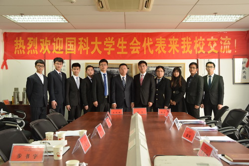 2016年3月5日(周六)中国科大-中国科学院大学学生组织交流在中国科大隆重举行。出席此次交流会的学生组织有中国科大校研究生会主席张海洋、中国科学院大学学生会主席李政、中国科大学生会闫鹏飞、中国科大科学岛分院研究生会主席彭娇及两校学生组织代表。