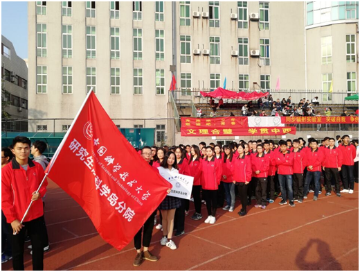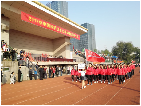 2017年10月27-28日,中国科学技术大学体育运动会在东区田径运动场盛大开幕,我院2017级硕士研究生共有82名研究生代表参加开幕式等活动。这是我院研究生第一次参加校运动会活动,迈开了我院研究生在校运动会上的第一步,为今后我院研究生在体育运动方面与中国科大的紧密联系打开了一扇新的大门。