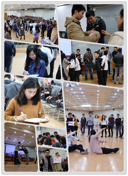 当天下午,院研究生会组织新生开展了素质拓展活动。全体新生被随机分成5个小组,以小组的形式完成游戏内容。“解手链”,“气球传递”,“你画我猜”,“肢体字母”,“群龙取水”,“爱在指尖”等一个又一个精彩活动依次进行,同学们互相配合协作,热情高涨。