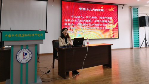李宏伟教授从十九大报告关键词出发,结合她本人的学习体会,带领参会党员一起学习了中国共产党人的初心和使命,中国特色社会新时代主要特征,总结并展示了十九大报告中关于党中央自党的十八大以来在经济、政治、文化、社会、生态、军事、外交、国防等领域的实践新举措和取得的伟大成就。