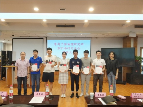在第21届研会主席团竞选换机额, 5位候选人依次上台发表竞选演讲。他们热情洋溢、成竹在胸,候选人通过精彩绝伦的演讲,展示自己的风采,以及对研会工作的设想。竞选演讲结束后,通过无记名投票表决,产生了以孟令义、邓茜和汪日新三位同学为主席团的等离子体所第21届研究生会。