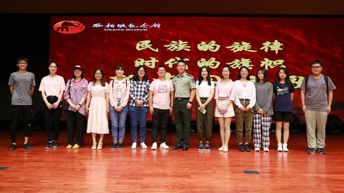 姚军老师以革命景点歌曲互动教学的形式,首先向同学们讲述了再现长城抗战的经典电影《风云儿女》中的主题歌《义勇军进行曲》,在经历过炮火和无数先烈鲜血的洗礼后,最终被确立为中华人民共和国国歌的光辉历程,中国共产党带领全国人民进行的艰苦卓绝的抗日战争,让在场所有人为之动容。随后,在姚军老师的指导下,全体同学齐唱《没有共产党就没有新中国》、《中国人民解放军进行曲》,以及《团结就是力量》等曲目,这些融入中华儿女几代人血脉的经典旋律,让全场爆发出饱满的热情。姚军老师还通过自己的亲身演绎,带领同学们赏析了歌曲《歌唱二小放牛郎》、《天下乡亲》等曲目,深情讲述了歌曲背后中华儿女众志成城的动人故事。