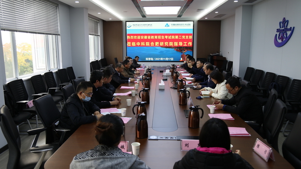王俊峰对省考试院一行的到来表示热烈欢迎,感谢省考试院一直以来对合肥研究院研究生招生工作的关心和指导,并简要介绍了合肥研究院情况。李贵明汇报了合肥研究院研究生教育基本情况,以及与省属高校开展研究生联合培养的有关情况。