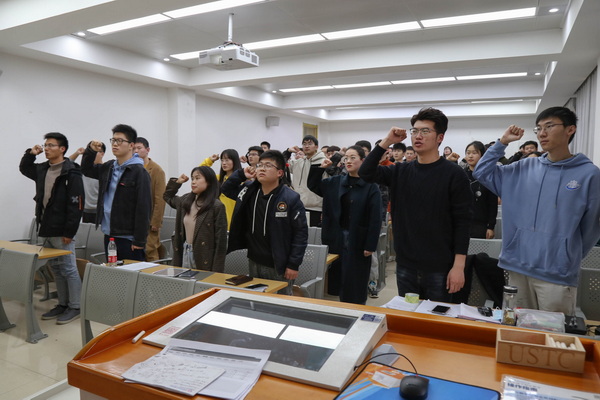 第五项议程,全体同志重温入党誓词。等离子体所2021级党小组全体党员在党小组组长刘勇同志的带领下,面向鲜艳的党旗,郑重的举起右手,以铿锵有力的宣誓声,表达不忘初心、砥砺传承的坚定决心。通过重温入党誓词,全体党员再一次接受了入党誓词的洗礼,更加体会到作为一名共产党员的责任感和使命感。大家纷纷表示,要始终不忘党的初心和使命,严格要求自己,珍惜荣誉,始终牢记共产党员全心全意为人民服务的宗旨,发挥先锋模范作用,为党和人民争取更大的胜利和荣光。