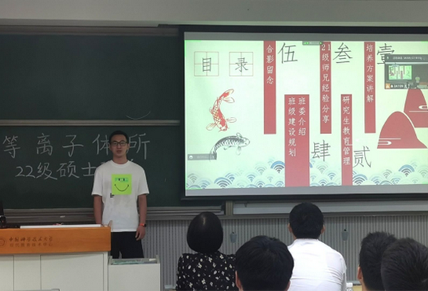 绿树翳映好时光,秋日暖阳喜相迎。9月22日下午4点,等离子体所2022级硕士班举行了第一次班级见面会,共有三个会场,分别是科大西区3A109主会场、科大高新区GT-B110分会场以及联培腾讯会议分会场,研究生处常昱红老师、谢亚东老师以及科大班主任熊立勇老师出席本次会议。本次班会旨在为同学们讲解培养方案以及研究生教育相关工作,让同学们能尽快进入学习与科研并进的状态。