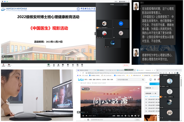 2022级等离子体所硕士班、核能安全所博士班、健康所硕士班,2021级安光所硕士班等分别举行线上观影活动。《心灵捕手》、《中国医生》、《同心战“疫”—新冠肺炎疫情纪录片》等影片,让同学们感受爱与信任、理想与现实、坚持与放弃……每个人都会有不同程度的困惑,唯有不懈努力、坚强奋斗,才能战胜困难,提升自我。国有难,披甲执戟,民有困,八方支援。每个人都是这场战“疫”的见证者,坚信不惧前行,终将度过难关。