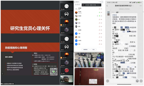 2022级等离子体所博士心理委员向同学们做有关心理安全的在线报告。健康所硕士心理委员也从自身角度分享了个人防疫心得。