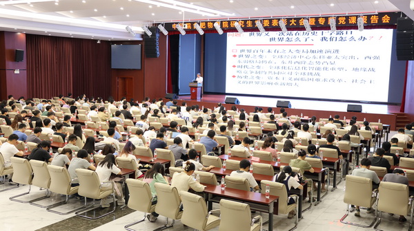 为庆祝中国共产党成立102周年,深入推进学习贯彻习近平新时代中国特色社会主义思想主题教育,7月13日,合肥物质院研究生党委举办庆祝建党102周年表彰大会暨主题教育专题党课报告会。合肥物质院党委书记黄晨光出席会议并作题为《学习思想,把握立场观点方法,在创新实践中锻造新生力量》的专题党课报告。研究生处处长李贵明、副处长孙凌云、研究生处全体老师及全体研究生党员参加会议,研究生党委书记、副处长徐伟宏主持会议。