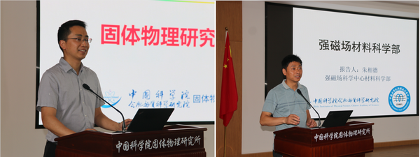 在学术交流环节,固体所刘瑞研究员、强磁场中心朱相德研究员分别作报告分享。刘瑞从固体所发展历史、科研成果、人才培养、党建文化等角度逐项展开,结合空天材料等六大主要学科方向,重点介绍固体所面向世界科技前沿及国家重大战略需求,开展的前瞻性、引领性基础研究和取得的丰硕成果。朱相德从强磁场科学中心材料科学部的研究方向、招生对象、国际一流科研装备等方面,向同学们讲解什么是凝聚态及其在日常生活中的应用,基础科研对高科技发展的意义等,并展示了高温超导材料、新型量子材料与器件、磁性功能材料与器件、特殊功能材料几个典型研究领域的团队构成及研发成果等。