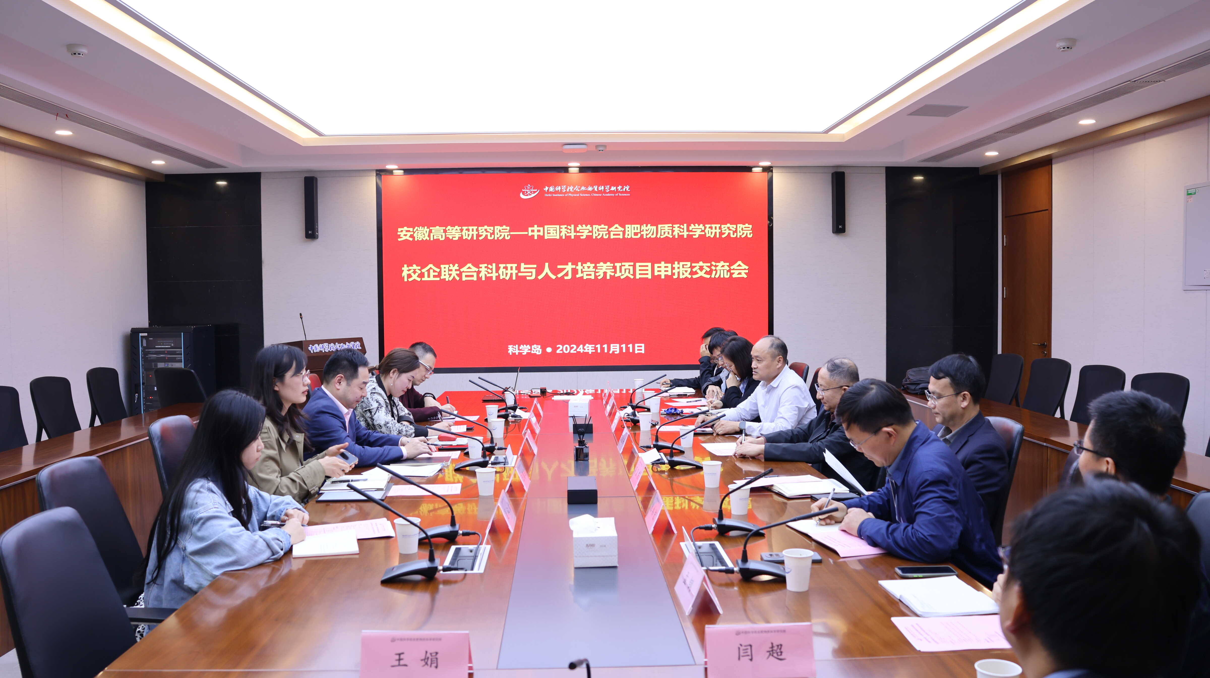 为推进教育科技人才“三位一体”发展,强化科技创新与产业创新深度融合,11月11日,安徽高等研究院筹建工作组负责人黄飞带队来岛交流校企联合科研与人才培养项目申报事宜,合肥物质院副院长王俊峰、科技促进发展处处长邓国庆、研究生处处长李贵明、相关导师代表参加会议。李贵明主持会议。