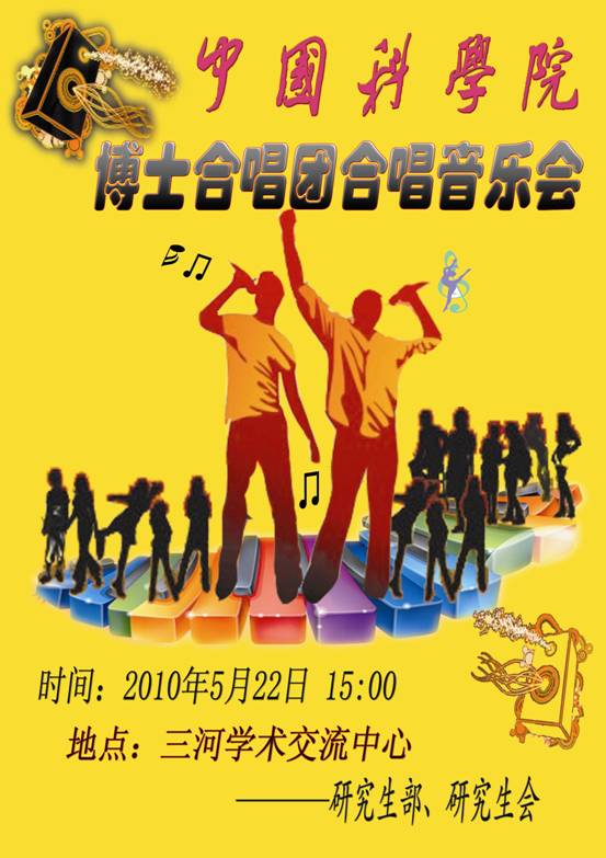 为进一步活跃校园文化、提升人文素养, 定于2010年5月22日下午3时整在科学岛学术交流中心举行《博士合唱团合唱音乐会》。参演单位:中科院研究生院博士合唱团、合肥研究院研究生艺术团。欢迎广大导师和同学前来欣赏、品鉴。
