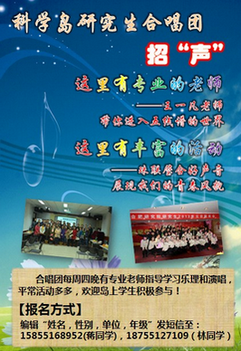为了让更多的同学感受到这种氛围,也让更多热爱文艺表演的同学一个展示自我的平台,合唱团将于3.18—3.25日进行新学期的招新,欢迎大家踊跃报名。