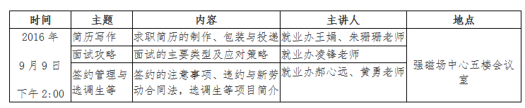 2017届毕业生就业工作已经启动。为满足同学们日益增长的求职技巧和职业规划辅导需求,应对即将到来的招聘高峰,校就业办将围绕同学们求职过程中的关键问题,开展一次讲座,对毕业生关注的问题进行深入细致的讲解,并随时回答参与同学的现场提问。具体通知如下: