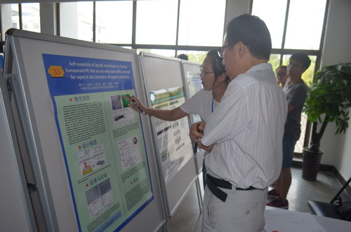 墙报展示环节,评委老师和同学们就墙报进行交流探讨。期间,每位同学都在自己墙报的一侧,为老师和同学讲解自己的科研成果。与会者或驻足凝望,或深深思索,或悉心指导。同学们和老师互动频繁,同学们彼此之间也互相交流,互相学习,气氛非常融洽。