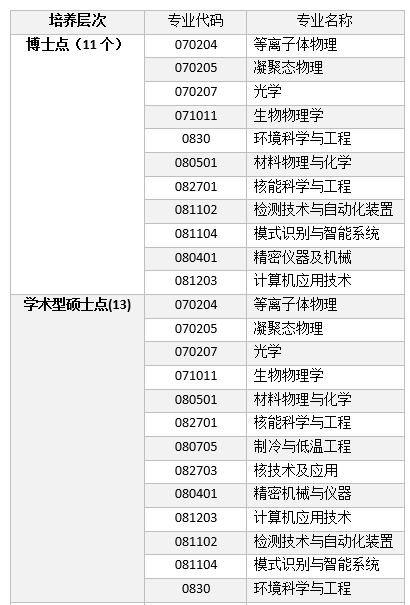 为做好教育部学信平台的在校生学年注册,为下一步的毕业生学历注册打好基础,近期拟对研究生信息系统中的在校生专业信息进行一次核查,核查后的当前专业将作为毕业专业写入学历证书。专业变动范围必须在合肥研究院目前已有的学科专业目录中,见下表。