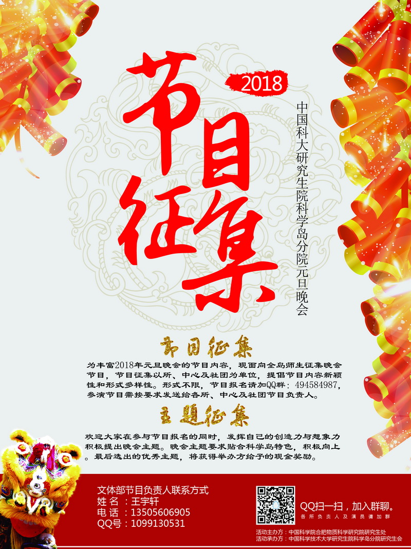 科学岛分院2018年研究生元旦联欢晚会节目征集开始啦!