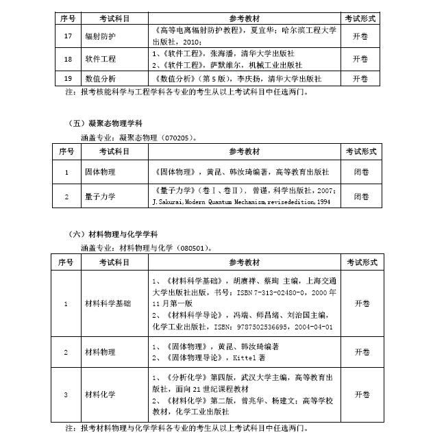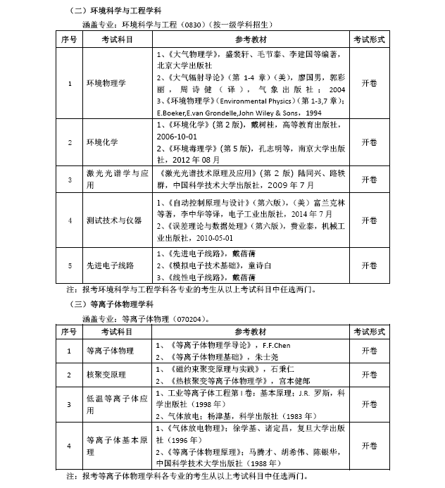 科学岛分院2018年博士研究生公开招考笔试科目及参考教材