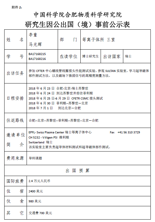 研究生因公临时出国(境)事前公示表-李童、马光辉