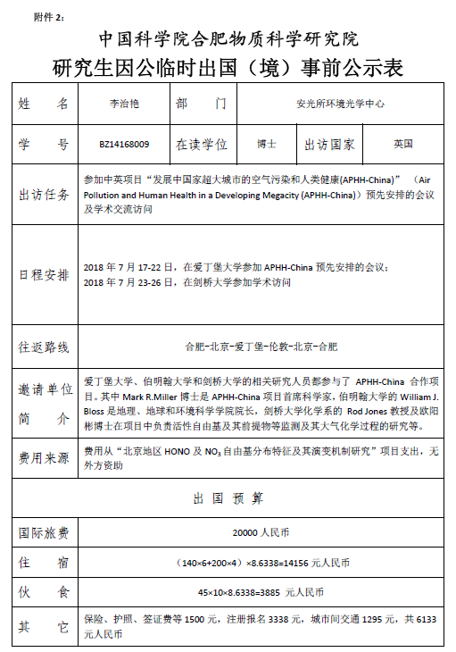 研究生因公临时出国(境)事前公示表-陈斌、李治艳