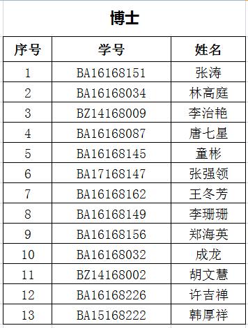 根据《中国科学技术大学关于做好2018年国家奖学金评选工作的通知》要求,经研究生个人申报,各研究所奖学金评审委员会初评,合肥物质科学研究院国家奖学金评审委员会终评,通过13名博士生和17名硕士生拟入选2018年度研究生国家奖学金,现将名单公示如下,公示期限:2018年10月9日—2018年10月13日。联系电话:0551--65594860,邮箱:chliang@issp.ac.cn