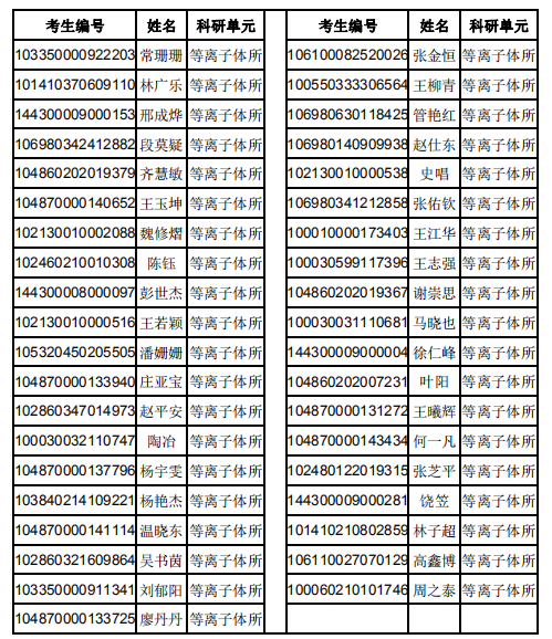 中国科大研究生院科学岛分院第三批拟调剂面试考生名单