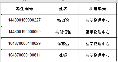 现将中国科大研究生院科学岛分院第四批拟调剂面试考生名单公布如下。