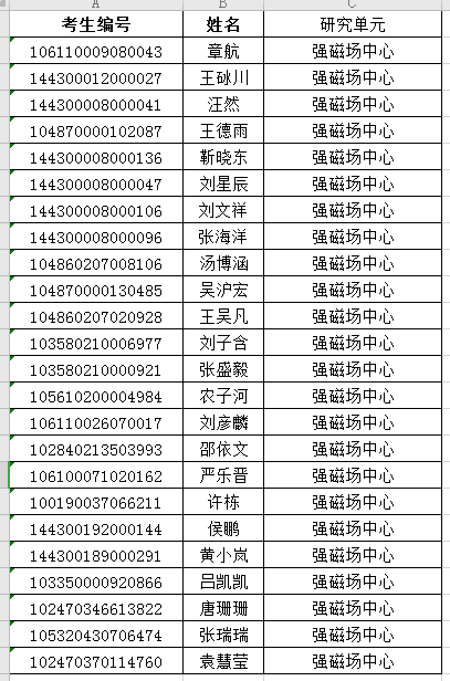 中国科大研究生院科学岛分院第五批拟调剂面试考生名单