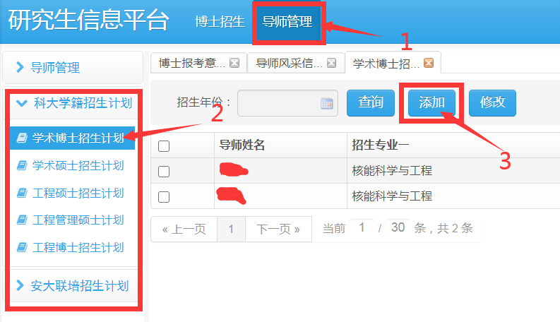 请各位导师登录系统后按下图所示添加2022年度招生计划。