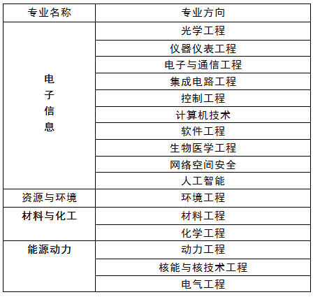 注:下表为需要确认专业的专业方向,附件2为科学岛培养方案。