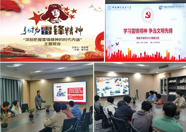 等离子体所21和22级硕士班,分别开展“学习雷锋精神,争当文明先锋” “深刻把握雷锋精神的时代内涵”主题班会。同学们观看纪录片,学习雷锋生平事迹,认真分享观后感;并结合日常生活中助人互助的经历,把握雷锋精神的时代内涵。