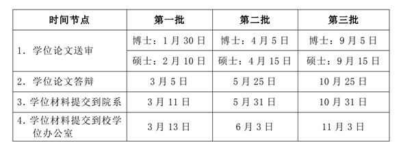 1.请导师和学位申请人严格遵守时间节点,合理安排学位论文把关、送审、答辩、学位申请工作。