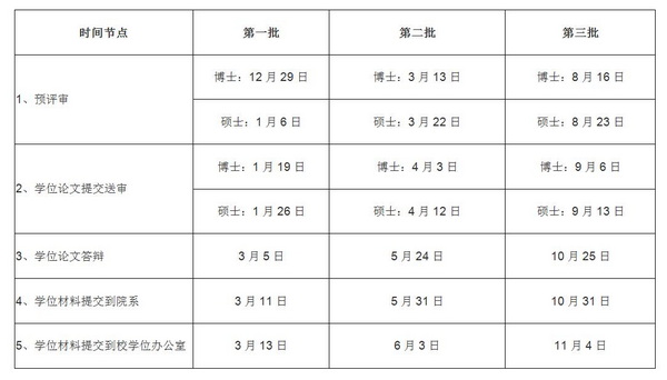 现将夏季批次学位论文评审、学位论文答辩、学位申请时间节点安排如下:
