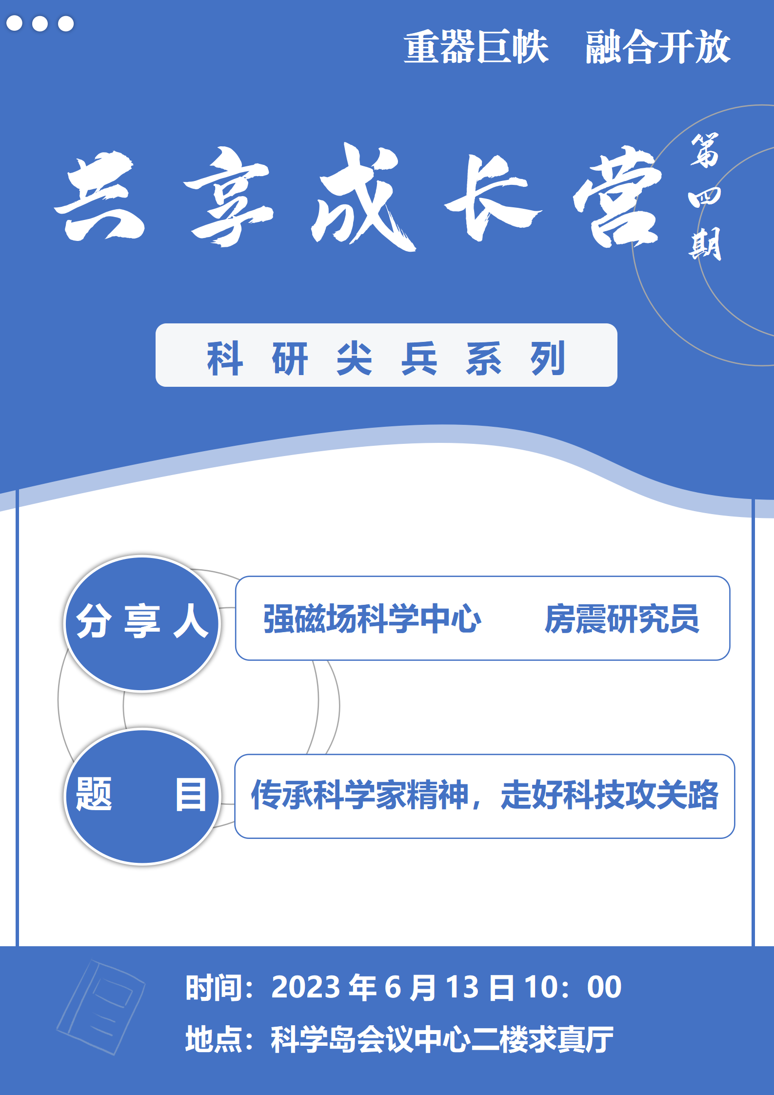 为促进各科研单元、各部门、各岗位沟通交流深度融合,院长办公室将推出第四期“共享成长营”科研尖兵系列活动,欢迎感兴趣的职工和学生参加,具体安排如下: