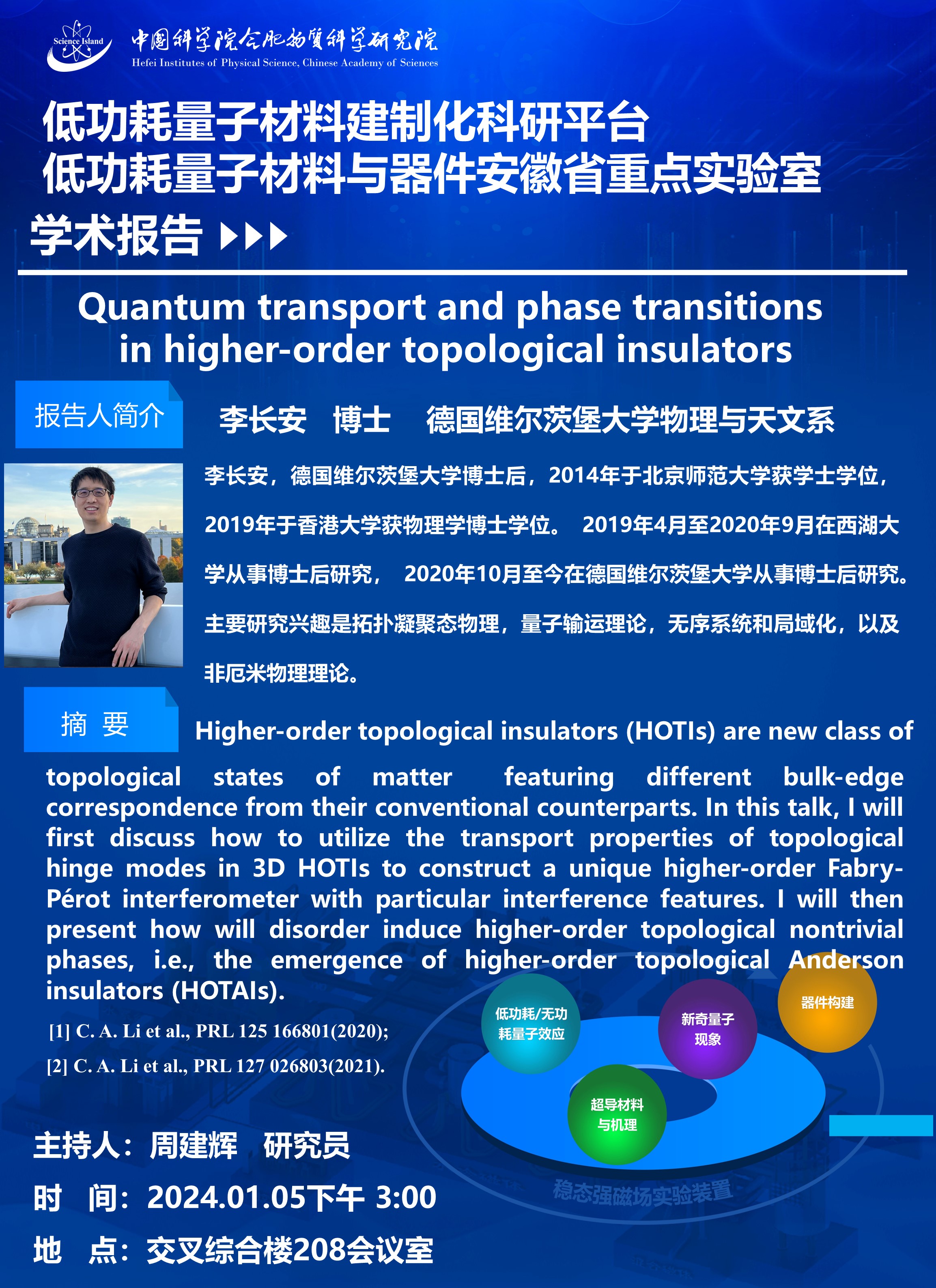 建制化科研平台报告(01.05):Quantum transport and phase transitions in higher-order topological insulators