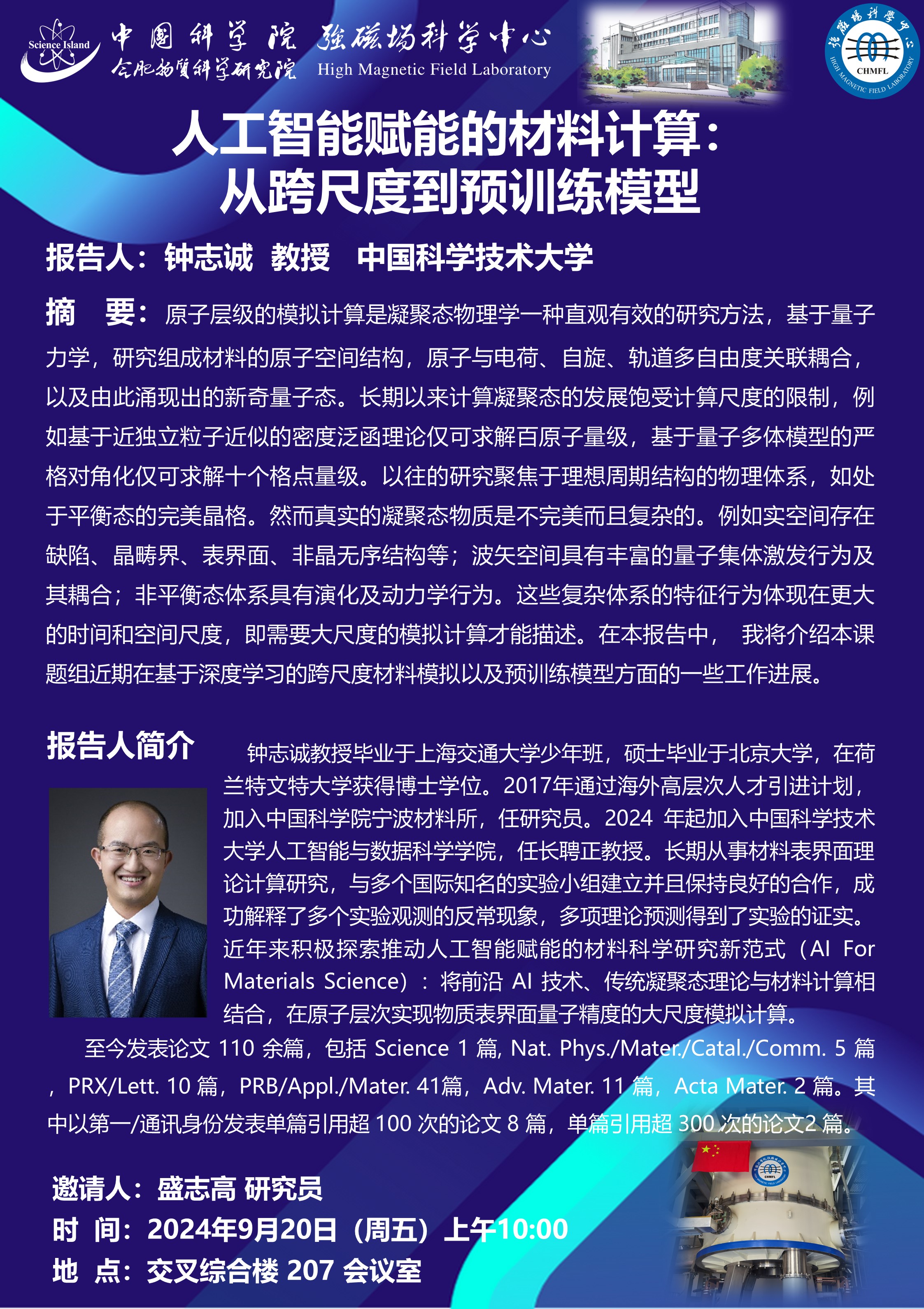 【9.20】人工智能赋能的材料计算:从跨尺度到预训练模型
