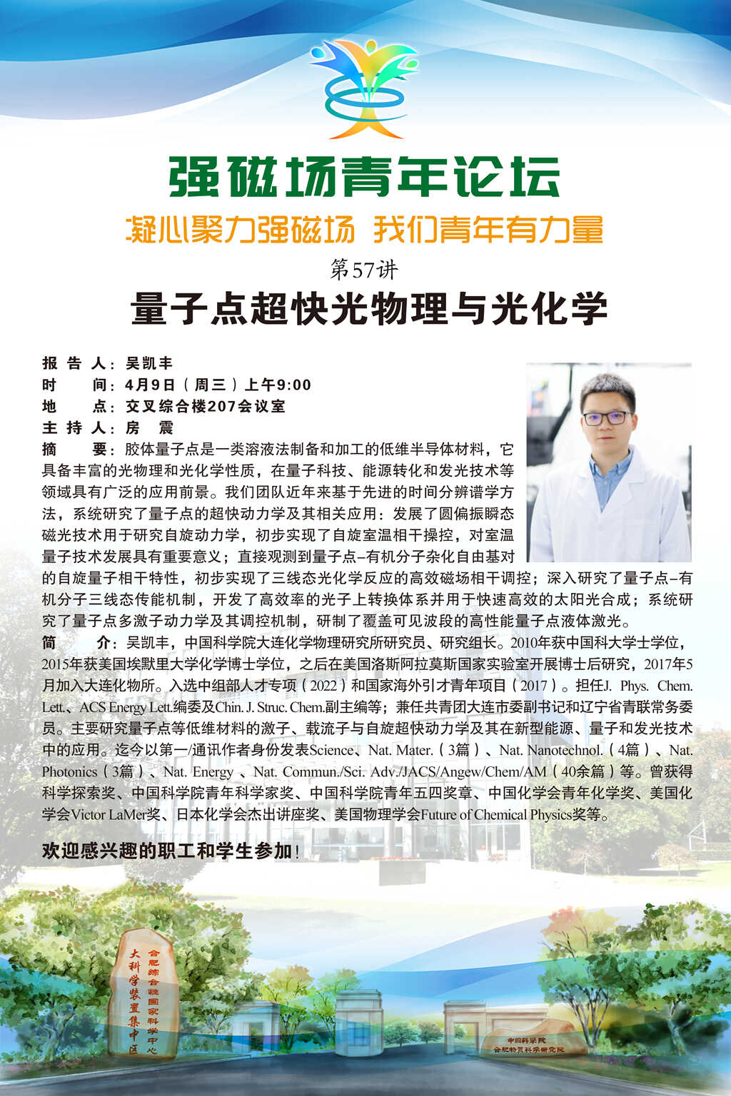 【4.9】强磁场青年论坛:量子点超快光物理与光化学