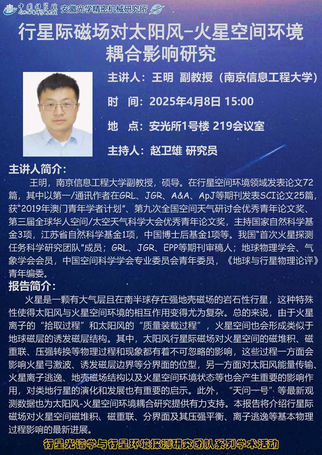 【4.8】行星际磁场对太阳风-火星空间环境耦合影响研究