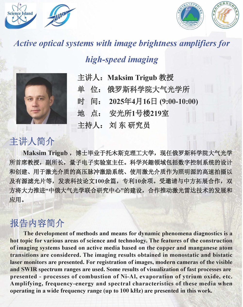 【4.16】Maksim Trigub:应用图像亮度增强器的高速成像主动光学系统研究