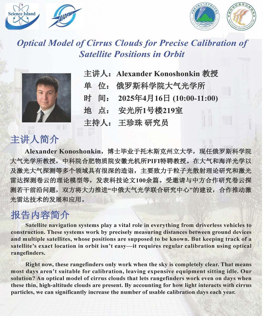 【4.16】Alexander Konoshonkin:面向卫星轨道精确校准的卷云光学建模研究