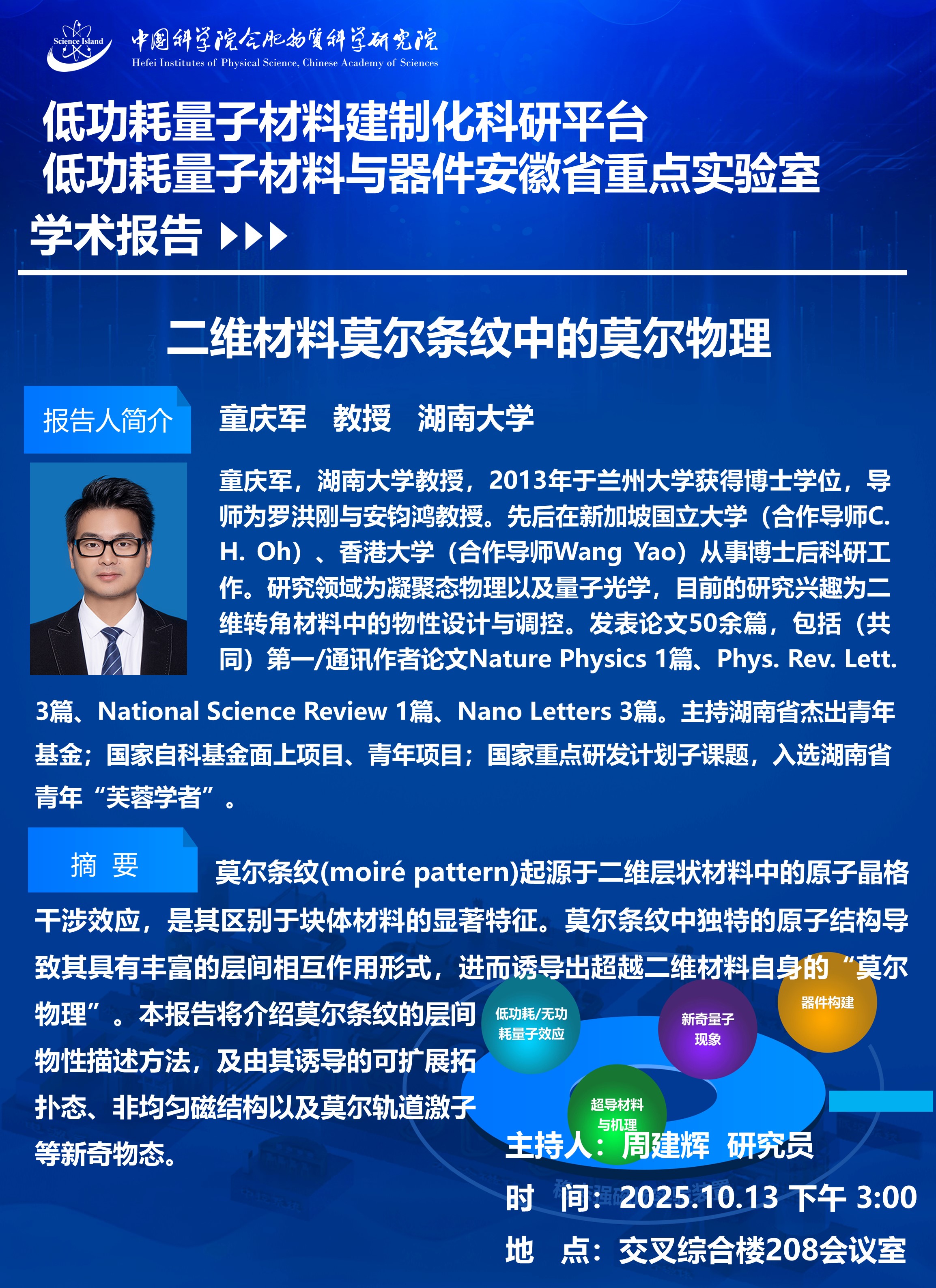 【10.13】学术报告:二维材料莫尔条纹中的莫尔物理