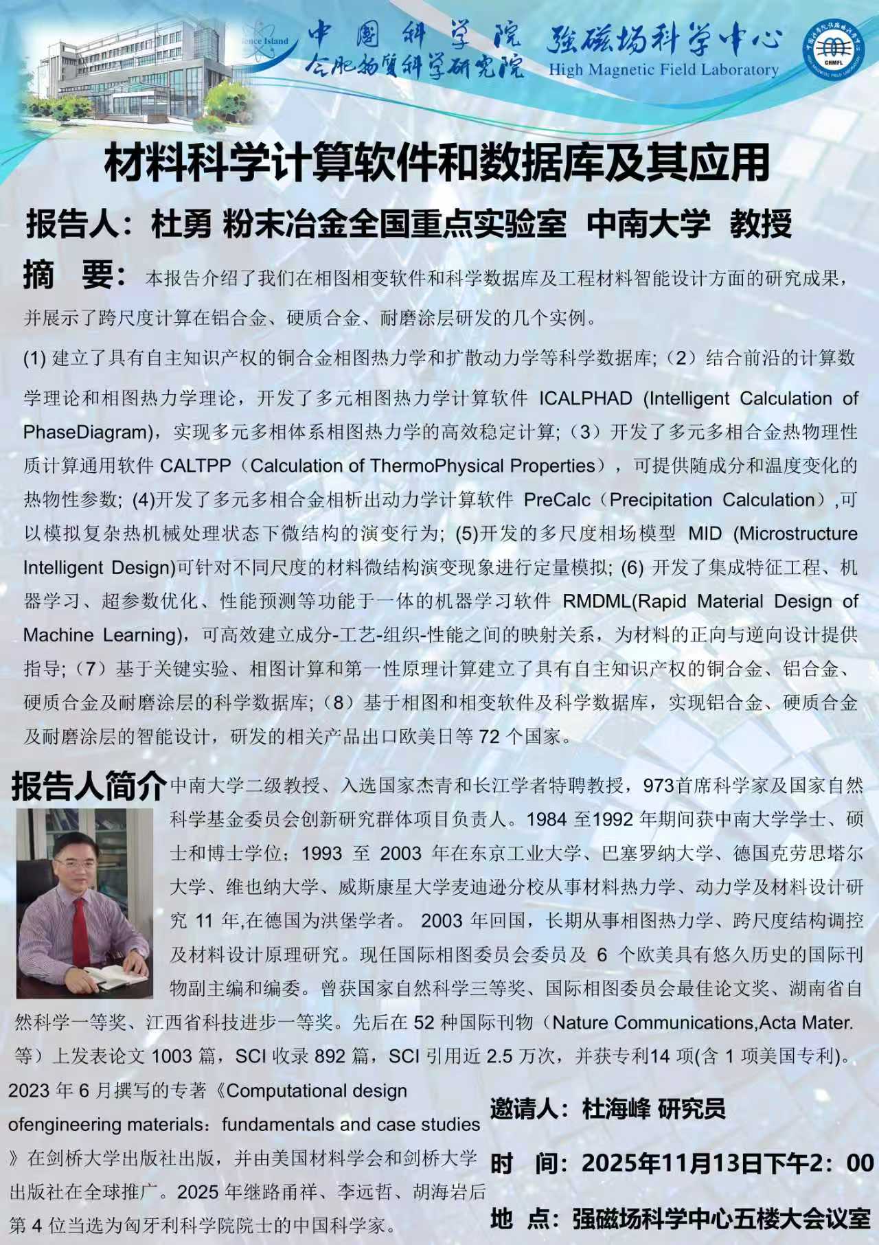 【11.13】学术报告:材料科学计算软件和数据库及其应用